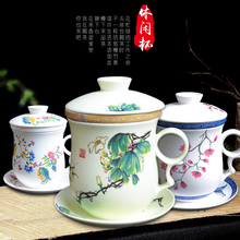 翔丰陶瓷茶杯茶具办公室水杯子会议杯男女青花瓷器带盖过滤茶叶罐