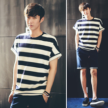 2016夏季男士圆领短袖t恤韩版宽松男士条纹蝙蝠袖男士短袖t恤潮