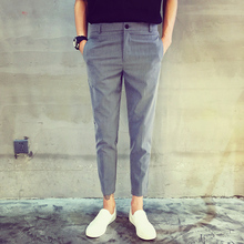 春夏韩版潮日系复古棉亚麻港仔简约文艺潮男士九分锥形小脚休闲裤