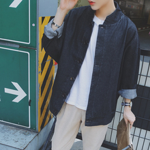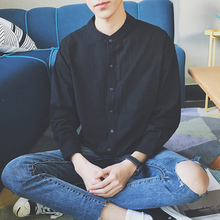 2017新款春夏男士立领衬衫修身韩版长袖衬衣纯色七分袖寸衫上衣潮