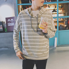 2017春季新款男士休闲连帽条纹卫衣潮 韩版个性插肩袖学生套头衫
