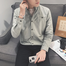 2017新款春季潮流立领衬衫修身韩版长袖衬衣纯色百搭男装寸衫上衣
