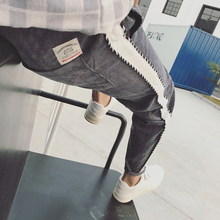 文艺男裤子春季青少年韩版潮流中低腰小脚牛仔裤男士九分裤哈伦裤