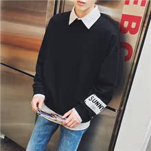 文艺男士圆领套头卫衣春季2017新款韩版潮流学生运动宽松外套男装