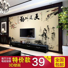中式电视背景墙墙纸壁纸客厅风水壁画3D立体墙布山水画天道酬勤