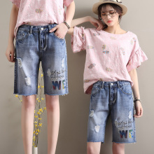 夏宽松休闲五分裤破洞牛仔短裤女学生大码bf5分直筒阔腿薄款中裤