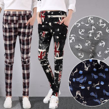 2017春秋高腰休闲哈伦裤女宽松印花小脚裤松紧腰格子裤外穿花裤子