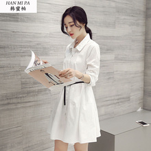 欧洲站2017春装新款韩范显瘦POLO领长袖a型连衣裙衬衫裙系腰带