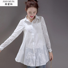 欧洲站2017春秋装新款大码衬衣潮长袖韩范宽松中长款绣花白衬衫女