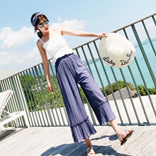 晚晚风同款褶皱高腰阔腿裤女雪纺夏季九分裤薄款韩版宽松学生裤子