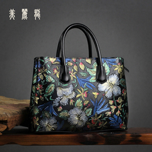美丽龙品牌包包2016新款头层牛皮民族风手绘女包纯真皮商务手提包