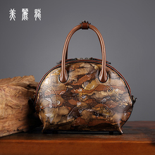 美丽龙原创民族风女式拎包头层牛皮女包手绘真皮商务大包包手提包