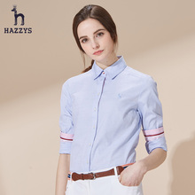 Hazzys哈吉斯春夏新品英伦风长袖衬衫 纯棉修身方领衬衣女装