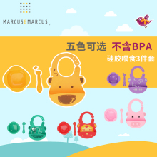加拿大Marcus婴儿家用硅胶餐具套装宝宝硅胶围兜碗汤勺套装