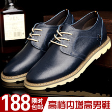 春夏季内增高男鞋头层牛皮英伦真皮系带青年男士休闲皮鞋软面皮潮
