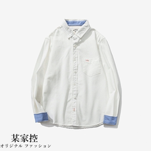 秋季潮牌日系复古纯棉牛津纺长袖衬衫男士休闲百搭修身衬衣青年潮
