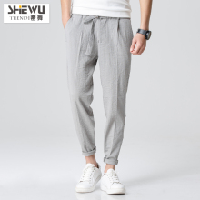 2017春夏新款日系棉麻小脚裤男士亚麻九分裤薄款哈伦大码休闲裤潮