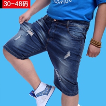 2017夏季牛仔短裤男破洞加肥加大码七分纯棉弹力胖子肥佬乞丐马裤