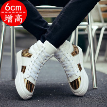 冬季男士韩版休闲板鞋潮流内增高男鞋子6cm运动鞋白色高帮鞋男黑