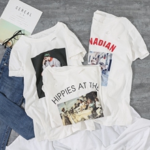 Miss菜头极简主义欧美风印花图案水洗破洞慵懒水洗棉短袖T恤女
