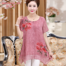 中老年女装妈妈装雪纺衫短袖T恤衫薄款40-50岁大码中长款上衣夏装
