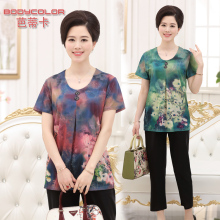2017夏装短袖两件套中老年女装妈妈装套装短袖T恤+裤子40-50岁60