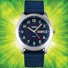 时刻美夜光编织尼龙表带学生双日历石英表男士手表帆布带男表9112