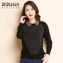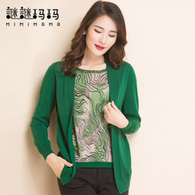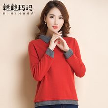 谜谜玛玛中年女装春季新品假两件套头针织衫宽松长袖妈妈毛衣开衫