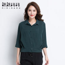 谜谜玛玛2017夏季新款重磅真丝衬衫女中袖翻领桑蚕丝纯色宽松上衣