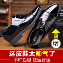 秋季男士商务正装皮鞋隐形内增高男鞋6cm英伦透气系带青年婚鞋子