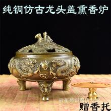 纯铜香炉熏香炉纯铜香薰炉龙熏香炉仿古熏炉龙纹炉做旧盘香炉黄铜