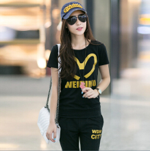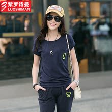 夏季大码女装休闲运动服韩版两件套短袖T恤休闲长裤跑步运动套装
