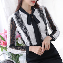 蕾丝衫女2016秋装新款韩版女装大码显瘦上衣条纹雪纺长袖打底衫潮