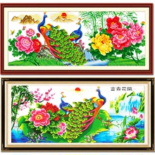 孔雀十字绣新款客厅花开富贵富贵花开牡丹花孔雀图孔雀开屏秀凤凰