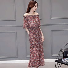 2017夏装新款韩版一字领连体裤九分裤修身碎花露肩雪纺阔腿连衣裤