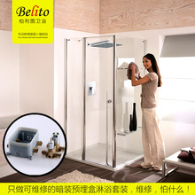 柏利图 全铜方型暗装花洒入墙式淋浴套装 嵌入式预埋盒混水阀宾馆