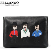 菲卡奴欧美范男包 潮流绣花真皮手包男士手拿包休闲手挽包 信封包