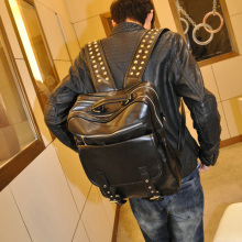 2017韩版潮流男式铆钉个性双肩大背包 休闲大容量多功能学生书包