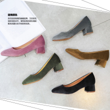 春款女鞋子2017春季新款潮百搭粗跟单鞋中跟丝绒方头韩版复古春鞋