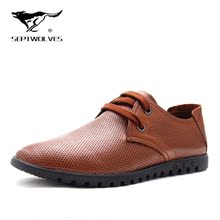 2017新款七匹狼男皮鞋夏季镂空皮鞋真皮男鞋商务休闲鞋系带透气鞋