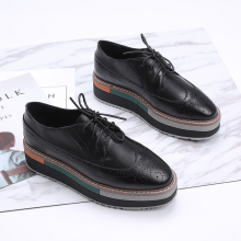 淘小胖女鞋欧洲站2017春季新款真皮方头厚底松糕鞋英伦风雕花单鞋