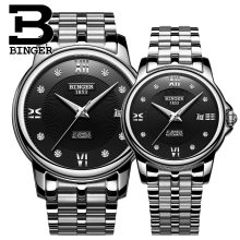 正品BINGER宾格男士手表全自动机械表情侣表一对女表防水水钻夜光