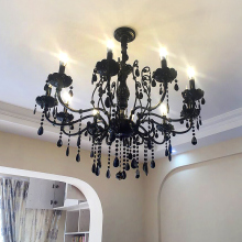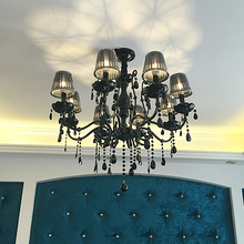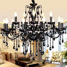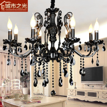 黑色水晶灯欧式客厅水晶吊灯美式餐厅卧室复古铁艺蜡烛灯饰灯具