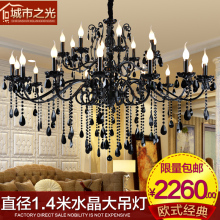 黑色欧式客厅水晶吊灯复古美式乡村铁艺服装店水晶灯店铺大气灯具
