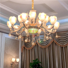 欧式客厅水晶吊灯复式楼奢华大厅锌合金玉石大气简约现代餐厅灯具