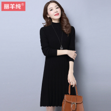 毛衣女秋冬高领修身针织衫女士羊毛衫女中长款套头打底衫女羊毛裙