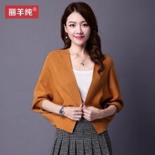 春秋装新款韩版大码女装针织衫女开衫女士短款毛衣小外套外搭披肩