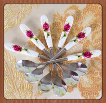 欧式骨瓷柄咖啡勺 出口欧式骨瓷玫瑰花纹咖啡勺(10枝免邮)咖啡勺