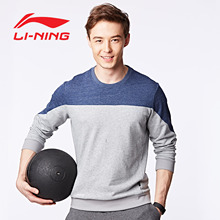 李宁长袖T恤男春季新款男士圆领套头运动卫衣透气上衣男装AWDK461