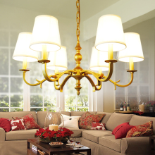 美式乡村吊灯 法式现代铁艺灯具 客厅灯北欧复古仿铜灯 布艺吊灯